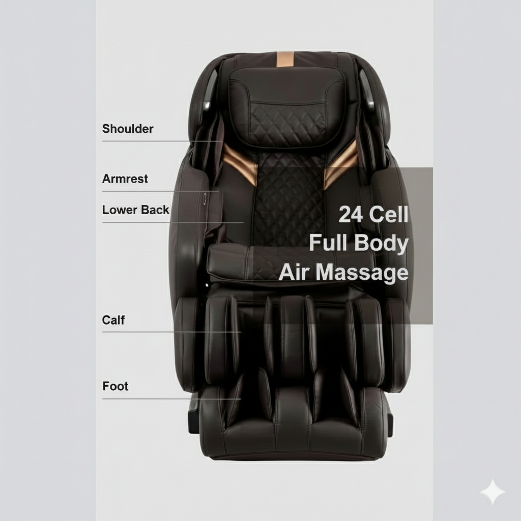 Experience advanced relaxation with the Osaki OS-Pro Admiral Massage Chair. It features a comprehensive L-Track system and a therapeutic Zero Gravity recline for deep, customized relief from neck to glutes. Easily manage your session using LED Light Controls and choose from 15 auto programs or 6 distinct massage styles. This model also provides a Full Body Airbag massage, soothing Lumbar Heat, and utilizes clever 2-inch Space Saving Technology to fit seamlessly into any room.