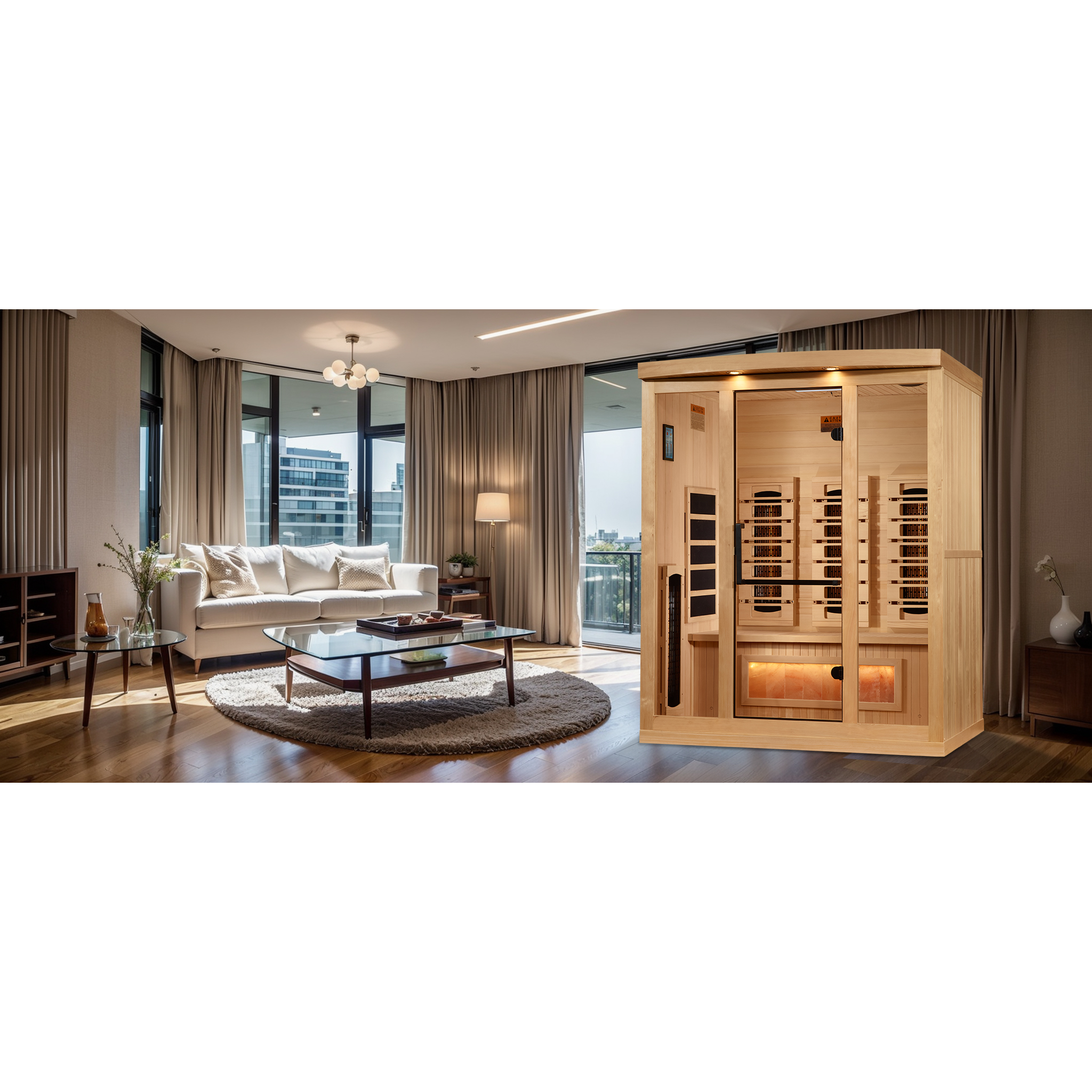 Golden Designs 3-Person Full Spectrum Infrared Sauna with Himalayan Salt Bar
