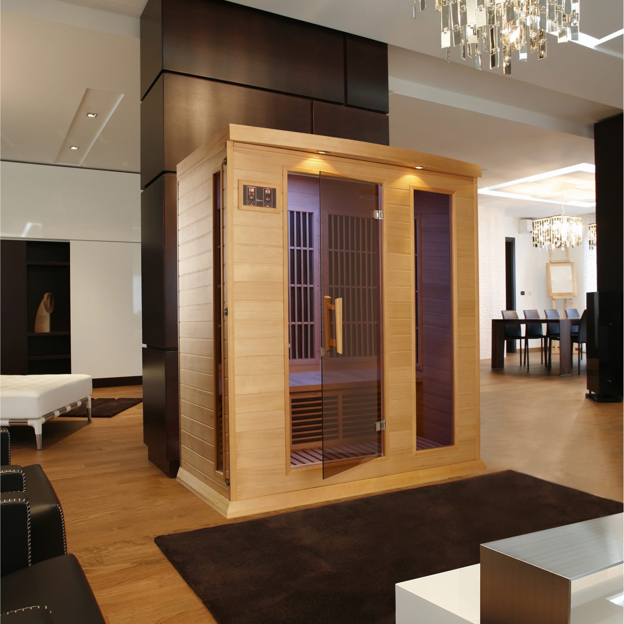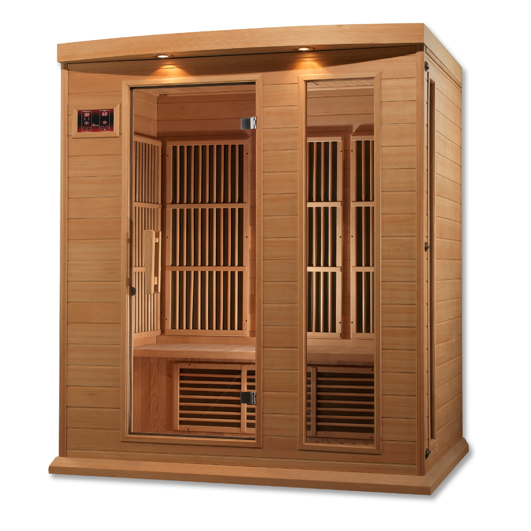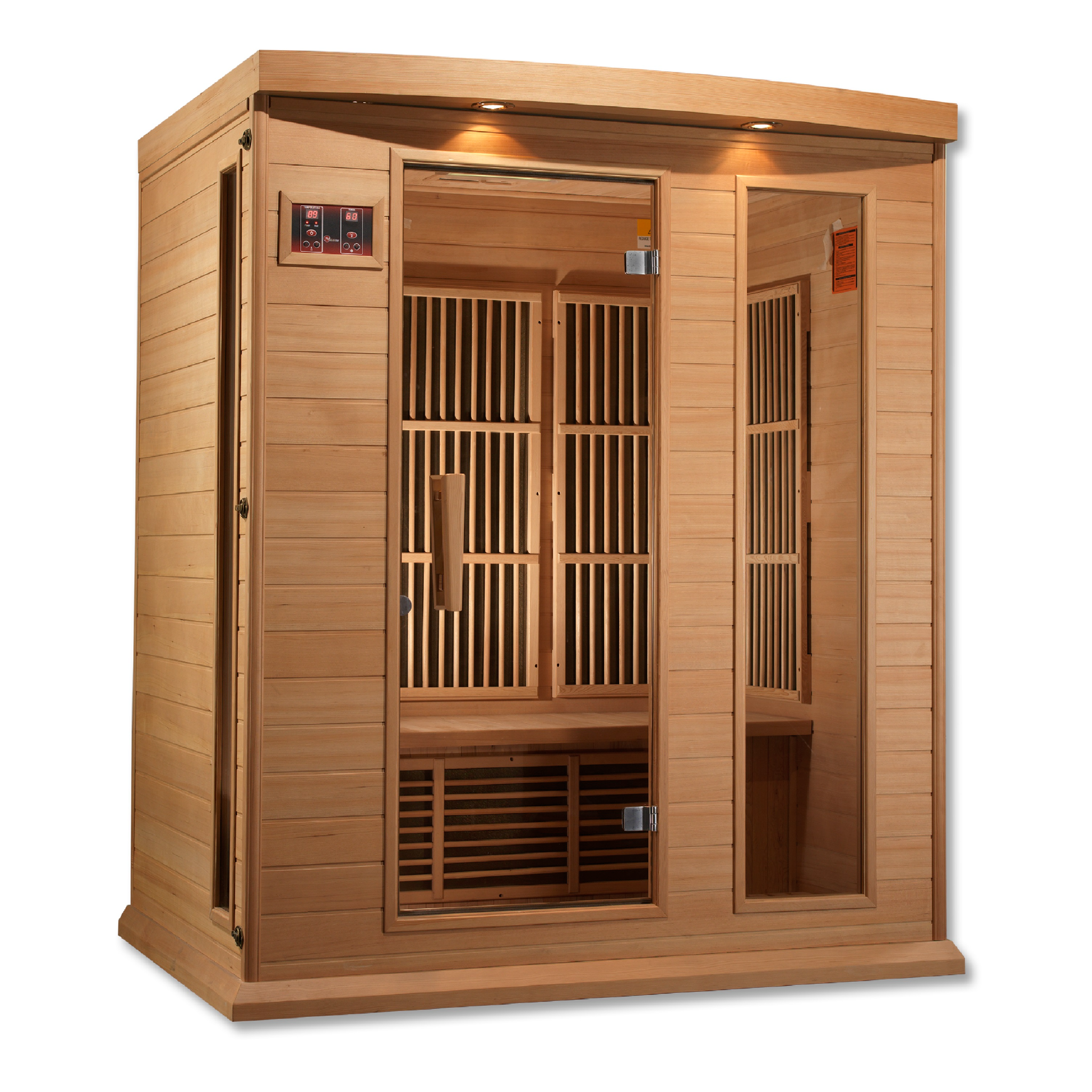 Maxxus Saunas are constructed of Canadian Reforested Hemlock Wood. These sauna products feature Low EMF heating panels, FM radio with MP3 Aux and Bluetooth capability, privacy glass and Chromotherapy Lighting.